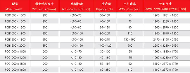 PCB型錘式破碎機技術參數: